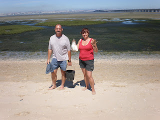 Tantas vezes que passei pela Ponte Vasco da Gama em Lisboa no sentido Lisboa/Montijo verificava a afluência de muita gente no Estuário do Tejo por alturas da maré baixa na tentativa de apanhar alguns bivalves, nomeadamente: ameijoas, berbigão, canivetes e outros que existe po aquelas bandas, fiquei com o desejo de um dia passar por lá. Foi o que fiz no dia 2 d2 Agosto aproveitando o convite do meu amigo Fernando Avelino.