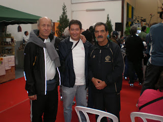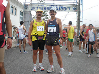 Quando cheguei ao Estádio 1º de Maio faltava ainda 1,30h para o início da prova, tempo suficiente para a habitual fase social onde disponibilizamos algum tempo para conviver um pouco com os amigos, até porque as oportunidades não são muitas. Lá estava o Luís Parro, não me perdeu a pinta desde a Mendiga, o M. Azevedo, J. Magro. M. Lima, Fernando Andrade, vai faltar-me algum, e conheci ainda o Joaquim Ferreira e o Pedro Ferreira.