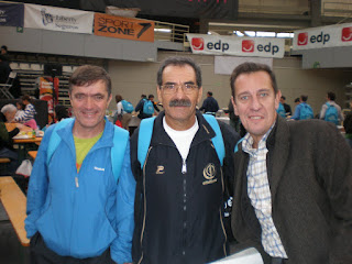O frio que estava aconselhava a que rapidamente fosse para o carro e mudar de roupa, e sem exagerar esta tarefa tornou-se quase tão difícil como fazer a Maratona, não fui capaz de tirar os ténis, pois cada vez que tentava chegar aos atacadores os gémeos agarravam e as dores eram muito fortes, optei então pela dicas que dei ao italiano, ao fim de meia hora comecei então pelos sapatos com receio do que ia encontrar e de seguida consigo trocar de roupa sem mais dificuldades, neste meio tempo que passou choveu a bom chover, passaram numerosos grupos de atletas e familiares de regresso aos seus pontos de partida com a boa disposição sempre a reinar, com os espanhóis sempre numa animação espectacular, foi assim durante o fim de Semana.