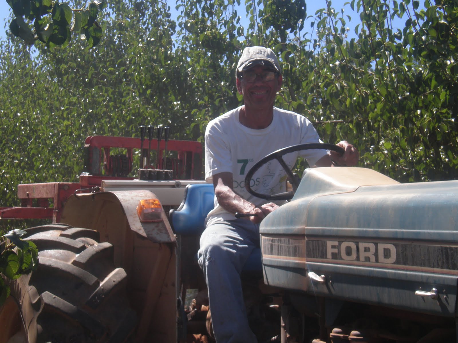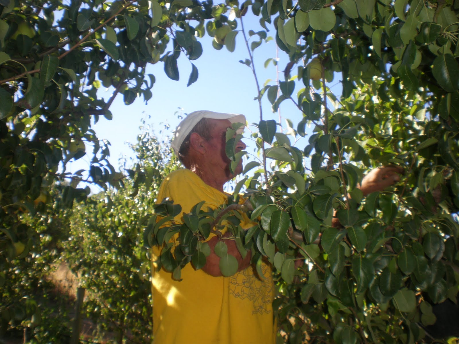 Ali estou eu a selecionar as melhores peras, o José Pereira e o seu tractor na recolha dos Maloques (penso que é assim que se diz) e o Carlos Gadunhas aproveitando uma pequena sombra ao mesmo tempo que ia fazendo a sua colheita.