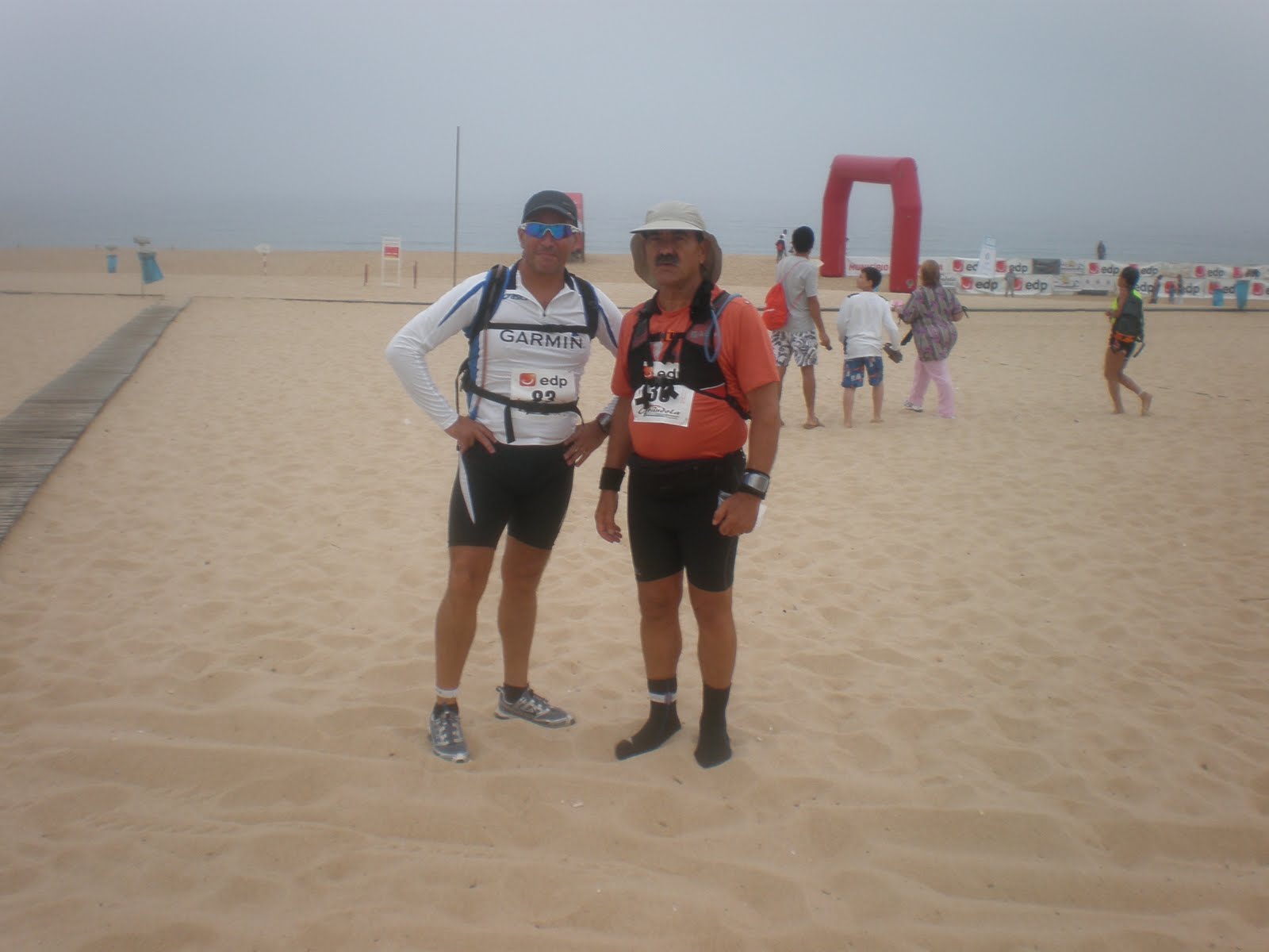 A habitual eficácia da organização da prova permitiu que o programa fosse cumprido até ser dado o tiro de partida, via-se por ali muito boa disposição, não sei se para disfarçar o nervosismo ou se aquilo para a maioria era considerado como favas já contadas. Para mim era uma incógnita, ia correr descalço, só tinha feito 2 treinos com meias normais no total de 25kms, mas estava confiante que assim eu iria sentir-me mais confortável quando me atirasse para o trilho das ondas.