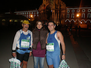 À espera estavam tantos amigos, lembrei-me dos meus "2 bombeiros" que se estivessem ali estavam tão felizes quanto eu, o Lima foi incansável, o António já tinha acabado há 40 m e manteve-se ali até que eu chegasse, a Isabel percorreu Lisboa quase toda, ela estava em todo o lado, o Vitor, a Família do Mota, e eu estava tão enleado que já nem sentia as dores, próprias de quem acaba uma Maratona.