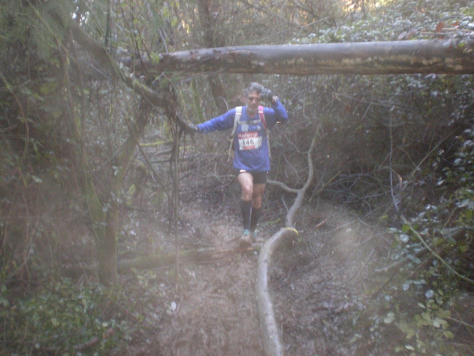 Esta parte do percurso teve no seu início e até a meio uma forte inclinação provocando em nós já um desgaste enorme ao nivel das articulações nos pés ( com câmbrias) e dos joelhos, e uma 2ª parte mais suave que nos levaria ao alto desta parte da Serra por zonas muito bonitas e sempre acompanhado por um pequeno Ribeiro cuja água cristalina nos tentava a cada momento, (quase que me atrevia a sugerir aos amigos Abutres que colocassem um pequeno copo de água (mesmo em plástico) junto ao caudal de água em diversos locais para que de uma forma mais fácil e cómoda para quem quizesse a ela tivéssemos acesso já que de joelhos não dá muito jeito). Descemos agora e saímos na parte Sul do pequeno Lago que é atravessado por uma ponte em madeira muito bem apresentada, estranhei, ou talvez não, porque na Edição anterior aparecemos ali vindos da parte Norte mesmo junto à margem esquerda do Lago, calculo que foi para evitar os cortes que alguns espertos fizeram o ano passado e que foram descobertos, pois desconheciam que havia um controlo logo a seguir à passagem daquela ponte. Dali até aos 18 kms, onde estava localizado o 2º abastecimento, foi a melhor parte do percurso, pouco acidentado e onde se encontra quase toda a fauna animal selvagem existente na Serra da Lousã, passámos e nada vimos. Continuava com a companhia do Jorge e ambos já denotávamos algumas dificuldades que íamos ultrapassando com o decorrer dos kms. No 2º abastecimento nova mesa bem farta de comida, laranjas, frutos secos, batatas fritas, marmelada sopa e muito mais, como seria normal atirei-me à marmelada e laranjas, ali bebi tambem um pouco de sumo e água enquanto descançava, pouco depois o Jorge já me dizia para nos irmos embora, coisa que fizemos logo de seguida para atacar o ponto mais alto da Serra que estava ali a 2 kms a uma altitude de 940 metros.