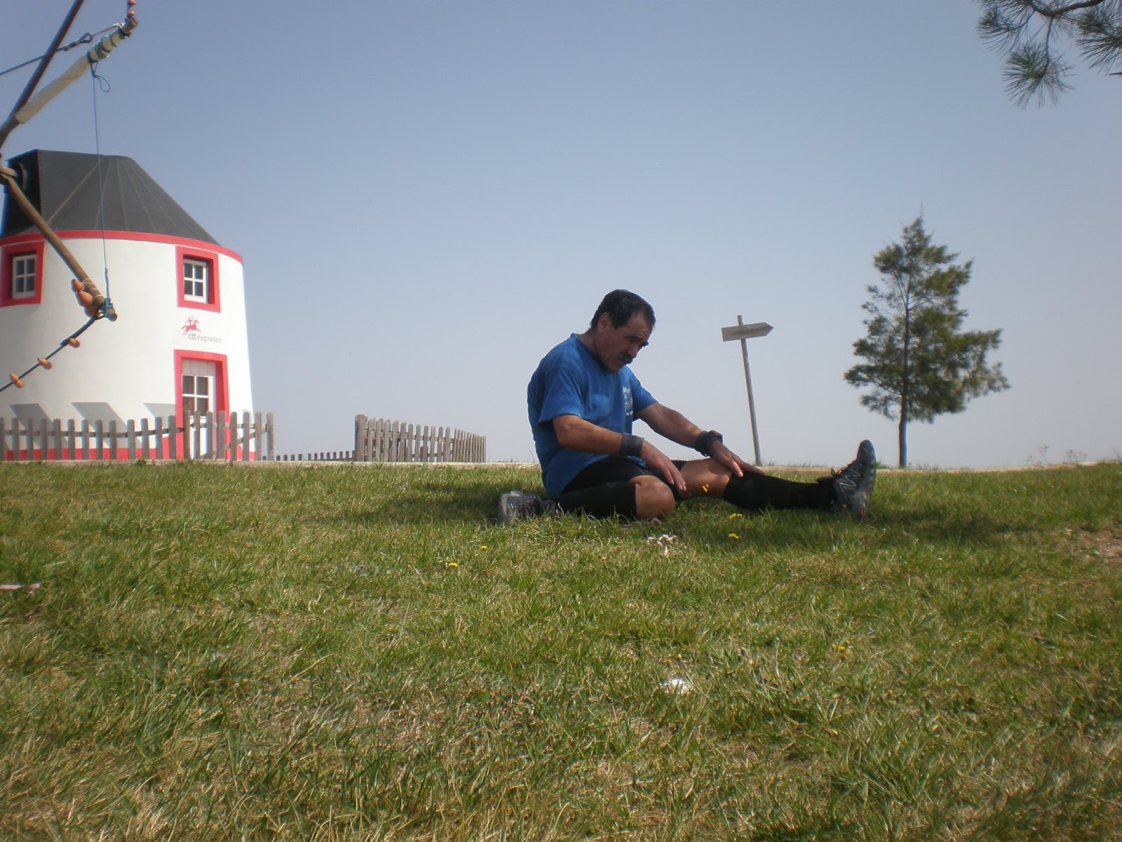 O meu grupo andou por ali para trás e para a frente até que optámos por ir pela estrada de alcatrão na direcção do Vimeiro mas continuávamos a não ver as fitas, até que ao fim de 1 kms começámos de novo as ver as fitas ao mesmo tempo que vemos surgir da esquerda da estrada uma atleta que vinha pelo caminho certo e que deveria ser também o nosso caso não nos tivéssemos perdido. Agora seguíamos com a certeza que a rota era a correta, a Dina vai-se embora e eu fico com o Pinho e a Margarida, aquela que surgiu ali da esquerda e que optou por ficar conosco, era a sua primeira prova para além dos 21kms e estreante em provas de Trail, acho que fez bem e as suas fragelidades depressa se começaram a notar, a juntar ás suas juntaram-se as minhas devido à canelite e também ao Pinho que resolveu levar sapatos justinhos ao pé e que ainda faltava espaço para a meia, o resultado foi desastroso, a juntar a isto estava também com um problema na coluna, que rico trio.
