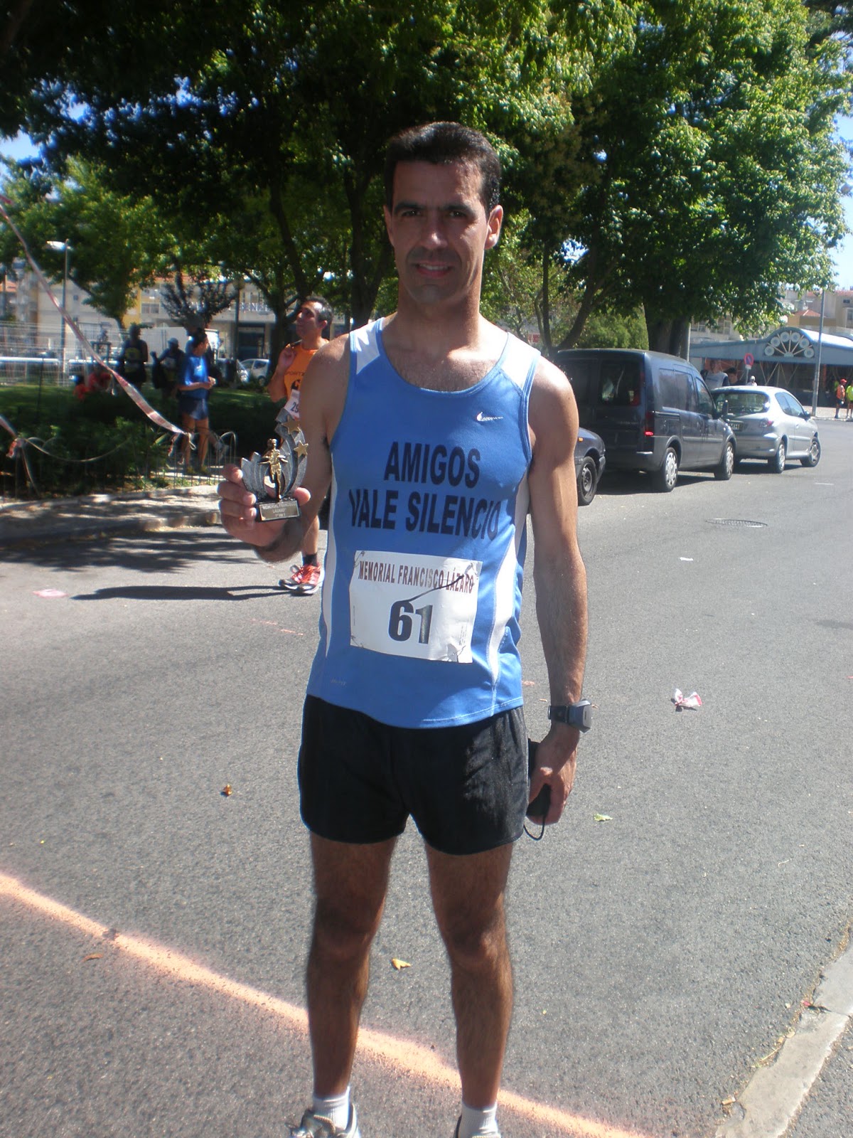 Descansei durante 10m, neste meio tempo atestei o camelback com 1 litro de água que me deram, tirei as neoprene (os pés começavam a ficar duridos por baixo) e calcei as meias de compressão e os ténis que levava ás costas, a diferença foi notória pois os pés ficaram mais confortáveis mas mesmo assim acho que fiz uma boa opção, já por ali via muitos a transportar os ténis nas mãos e a correrem descalços. Depois parti novamente com esperança que aquela paragem tivesse contribuído para recuperar um pouco as forças que de há muito vinham a faltar, foi ilusão de pouca dura, depois com a agravante de a maré já estar a encher e por consequência a auto-estrada também acabou e a progressão fazia-se agora em areia mais solta, o calor era abrasador, falava-se em 34 graus, o vento que vinha de frente era moderado e arrastava consigo uma aragem muito quente, as meias de compressão e os ténis tornavam agora os pés muito quentes, o estômago já custava a aceitar os gels, apenas ingeri 2 e os nogats enrolavam já na boca seca, a desidratação já impedia a existência de saliva e esta é indispensável à dissolvição e encaminhamento dos alimentos até ao estômago. Aos 30kms dicidi molhar os ténis, era já insuportável o calor que sentia nos pés e comecei a caminhar, terminava ali a minha corrida não valia a pena tentar contra o impossível, lembrei-me nesta altura do Fernando Andrade que tinha bloqueado há 2 anos mais ou menos naquele local e apenas arranjou forças para prosseguir caminhando. Aos 35 kms já levo 5,25h de prova e aos 39kms falta-me a água, já tinha consumido 2,5L. ela já estava muito quente mas havia agora começavam as preocupações, lembro-me então que ainda levava de reserva 0,5L dentro do camelback, tiro-a e logo verifico que aquilo era capaz de dar para coser algumas batatas, mas era melhor do que nada, sempre que queria beber um pouco descia até à água do mar refrescava-a um pouco, perdia ali 2/3 minutos, repeti a cena mais 4 ou 5 vezes mas pouco importava, não queria era prolongar para além do suportável as dificuldades em que já ia. Finalmente avisto a meta a menos de 1 km, a praia esta pejada de gente, procuro passar pelo meio ou espaços que tenho de procurar, aqui e ali um incentivo mas a maioria ignora, inicio uma breve corrida 200m no máximo e volto a andar para de novo já em linha de reta para a meta voltar a correr, baixo a cabeça a areia está seca e mole, ouço chamar olho e vejo a minha pérola mais recente, o David estava ali, olhava-me estranhamente mas logo me estente os braços pego nele e procuro levá-lo comigo até à meta, com ele ao colo tento dar mais uns passos de corrida, tinha a meta a 50 metros, mas desisto não tenho mais forças entrego-o de novo à mãe e sigo para a meta, para a próxima não vou perder nova oportunidade, nem que vá de rastos até lá chegar. Finalmente atingi a meta ao fim de 6, 48,37h para perfazer os cerca de 43,600kms que o meu cronómetro marcou.