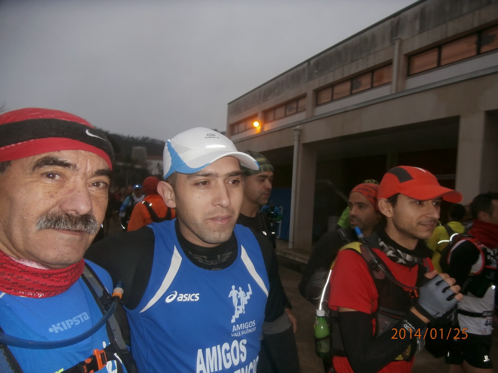 Eu estava ali com o Daniel, o meu genro, tal como no ano anterior na semana que antecedeu a prova choveu muito e deixou a serra pejada de rios e ribeiros e o terreno muito mole que se transformaria muito facilmente em lama assim que os primeiros começassem a passar, não chovia quando partimos e o céu estava encoberto, o vento era praticamente nulo mas tínhamos tido um aviso que no alto da serra fazia muito vento e frio, e a acrescentar a isto digo eu também que em toda a serra a partir logo do início o nevoeiro era muito intenso e que por vezes dificultava a visão sobre as fitas que nos guiavam, os primeiros 9 kms até ao abastecimento foram um bom aperitivo (ajudaram por certo a que os primeiros a chegar fizessem tempos canhão, juntando aqui também os 6 kms finais quase planos), o certo é que aos 3 kms de prova já eu vinha em último, bem atrás do atleta que fazia de "vassoura" o meu grande amigo e camarada paraquedista José Carlos Fernandes, tinha feito uma paragem "técnica" e ninguém se apercebeu, contudo mais à frente reentrei no grupo de trás e ali fui mais algum tempo até que tive a necessidade de tirar os bastões do kamelbeck e começar a utiliza-los contrariando as ideias que tinha de os usar só lá mais para o alto da serra face à necessidade de ter as mãos libertas para melhor enfrentar os diversos obstáculos e quedas que iriam surgir, ora esta operação motivou novo atraso e comigo ficou o "vassoura", entrámos no abastecimento dos 9 kms em último mas ainda lá estavam alguns atletas a abastecerem-se. Para além de um pedacito de banana e um cubo de marmelada nada mais ingeri, despeço-me do "vassoura" e sigo, até final nunca mais o vi mas tinha sempre a informação nos PACs que os últimos vinham com ele e dentro dos limites horários, alguns deles bem conhecidos e amigos.
